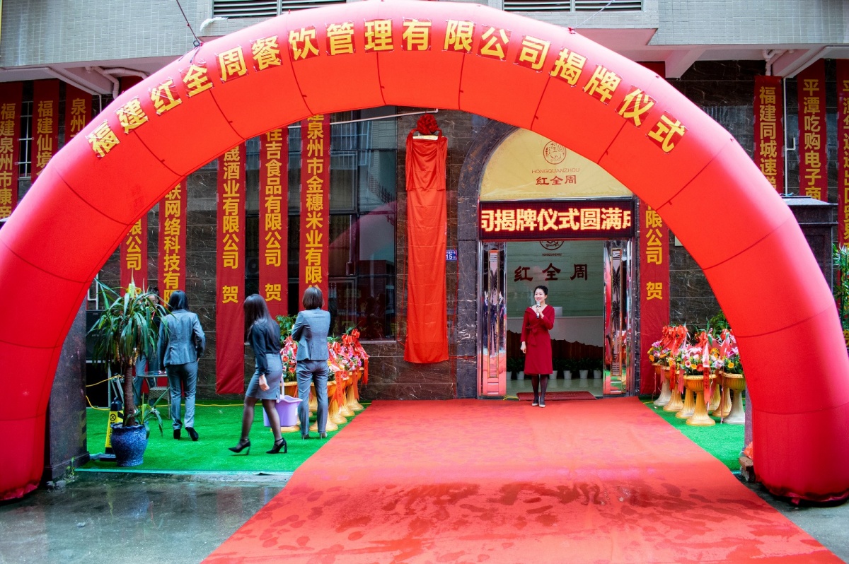 隨著紅綢的揭開,標志著福建紅全周餐飲管理有限公司走上新的征程,標志著紅全周品牌的發展進入新的階段,更預示著紅全周事業即將邁向更美好的明天!